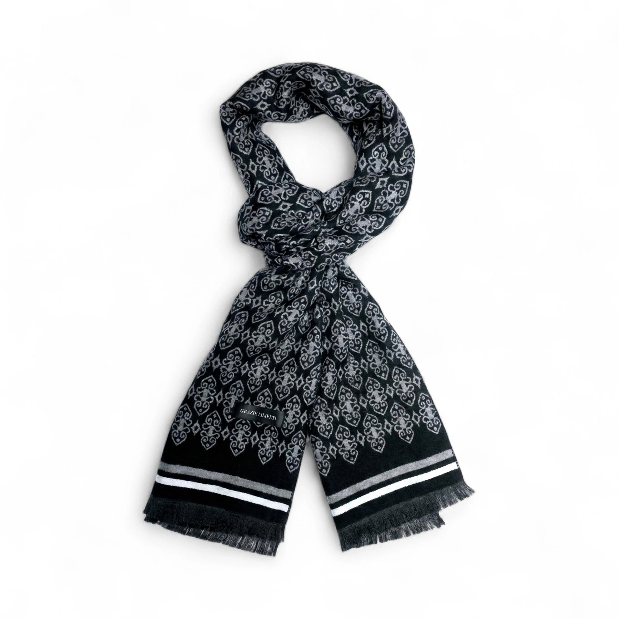 Eșarfă din cașmir Negru-Gri ornamental pentru bărbați - JONA