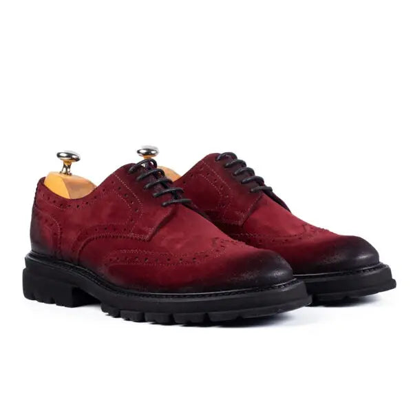 Un plus de rafinament sobru și personalitate pentru orice garderobă masculină. Așa s-ar traduce acest model de pantofi Oxford brogue bordo. care impresionează prin eleganță discretă și robustețe. Culoarea intensă și detaliile perforate oferă un aer sofisticat, fiind o alegere versatilă, potrivită atât pentru birou, cât și pentru evenimente speciale. Stilul clasic este reinterpretat prin talpa masivă, conferind confort și o notă contemporană, ideală pentru bărbatul modern ce caută să iasă în evidență prin detalii subtile.